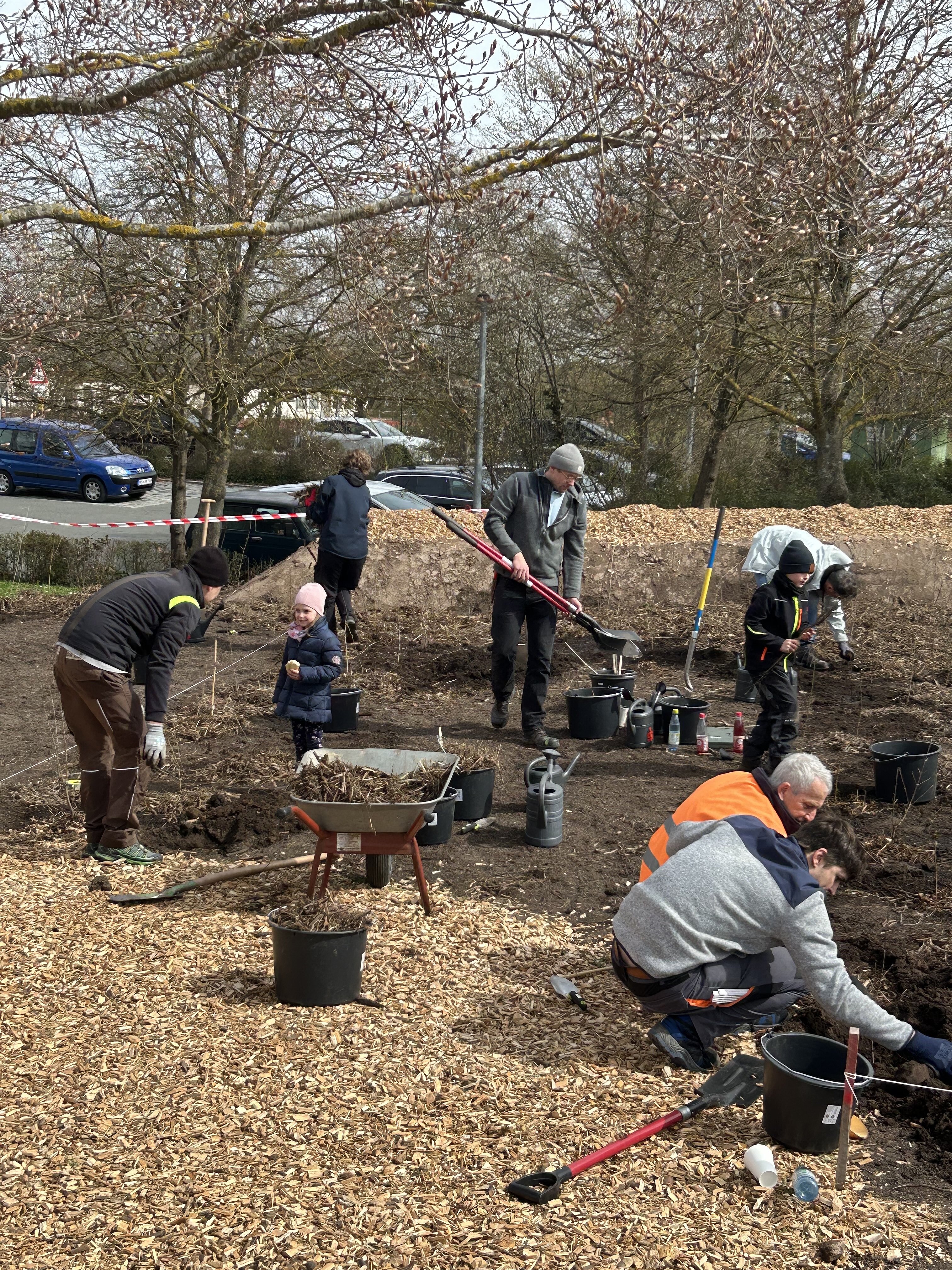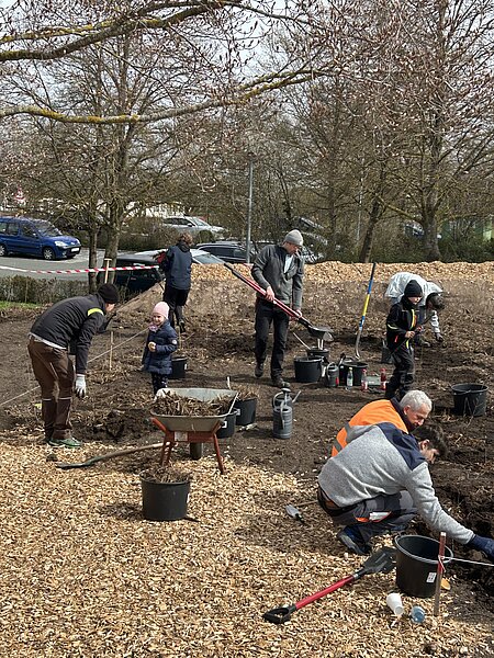 Bei strahlendem Frühlingswetter fand am vergangenen Samstag, 28.03.2026 die naturpädagogische Pflanzaktion für das Miniwildobstwäldchen am Jobcenter statt. Rund 50 Teilnehmerinnen und Teilnehmer beteiligten sich aktiv an der Gestaltung dieses besonderen Projekts.