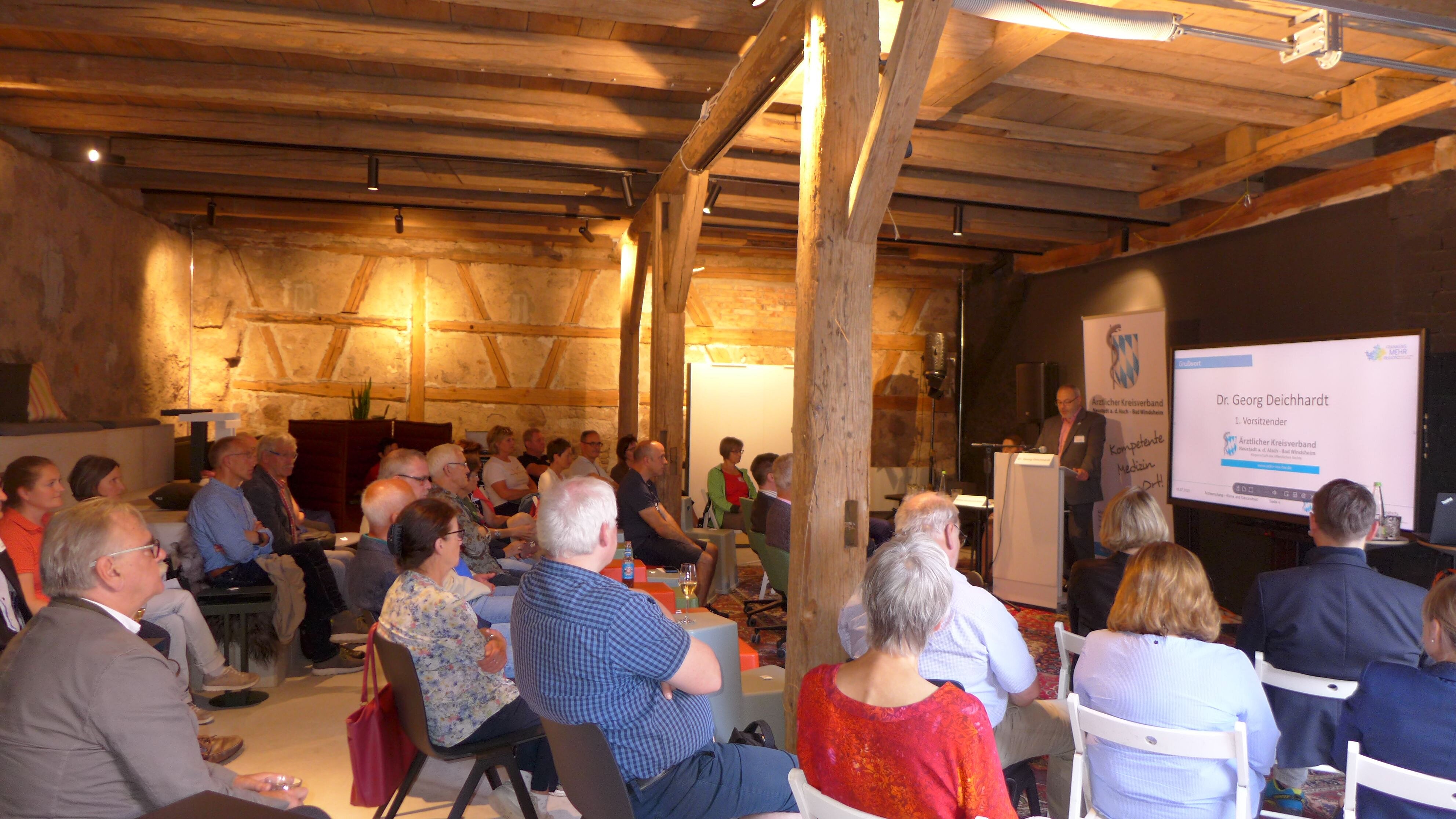 Mit dem bewegenden Thema „Klima und Gesundheit – wie der Klimawandel unsere Gesundheit beeinflusst“ luden Landrat Helmut Weiß und Dr. med. Georg Deichhardt, erster Vorsitzender des Ärztlichen Kreisverbandes Neustadt a.d.Aisch-Bad Windsheim (AEKV-NEA-BW), gemeinsam zum diesjährigen Ärzteempfang in den Gutshof Neun in Neuhof a.d.Zenn ein. Beide dankten den Ärztinnen und Ärzten, welche im Landkreis Neustadt a.d.Aisch-Bad Windsheim tätig sind, für ihren Einsatz zum Wohle der Bevölkerung und wiesen auf den großen Einfluss des Klimas und des Klimawandels auf die Gesundheit hin.
