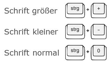 Die Schriftgröße kann auch bei den Einstellungen Ihres Internetbrowsers eingestellt werden: