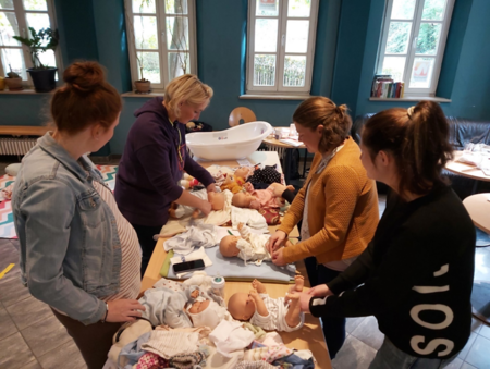 In diesem Babypflegekurs geht es rund um die Pflege und Versorgung eines Säuglings. Zusammen wird erlebt, wie der Alltag dann aussehen kann. Durch Informationen und auch praktisches Durchführen wird Sicherheit im Umgang mit einem Säugling eingeübt und somit Vertrauen für die bevorstehende Zeit mit dem eigenen Kind gewonnen. Themen wie Baden, Waschen, Wickeln – verschiedene Methoden, Körperpflege, Anziehen, Stillen und Ernährung im ersten Lebensjahr, Fläschchen geben, Schlafen, Fertigmachen für einen Ausflug, sowie Baby- und Kinderzimmerausstattung werden in diesem Kurs besprochen.