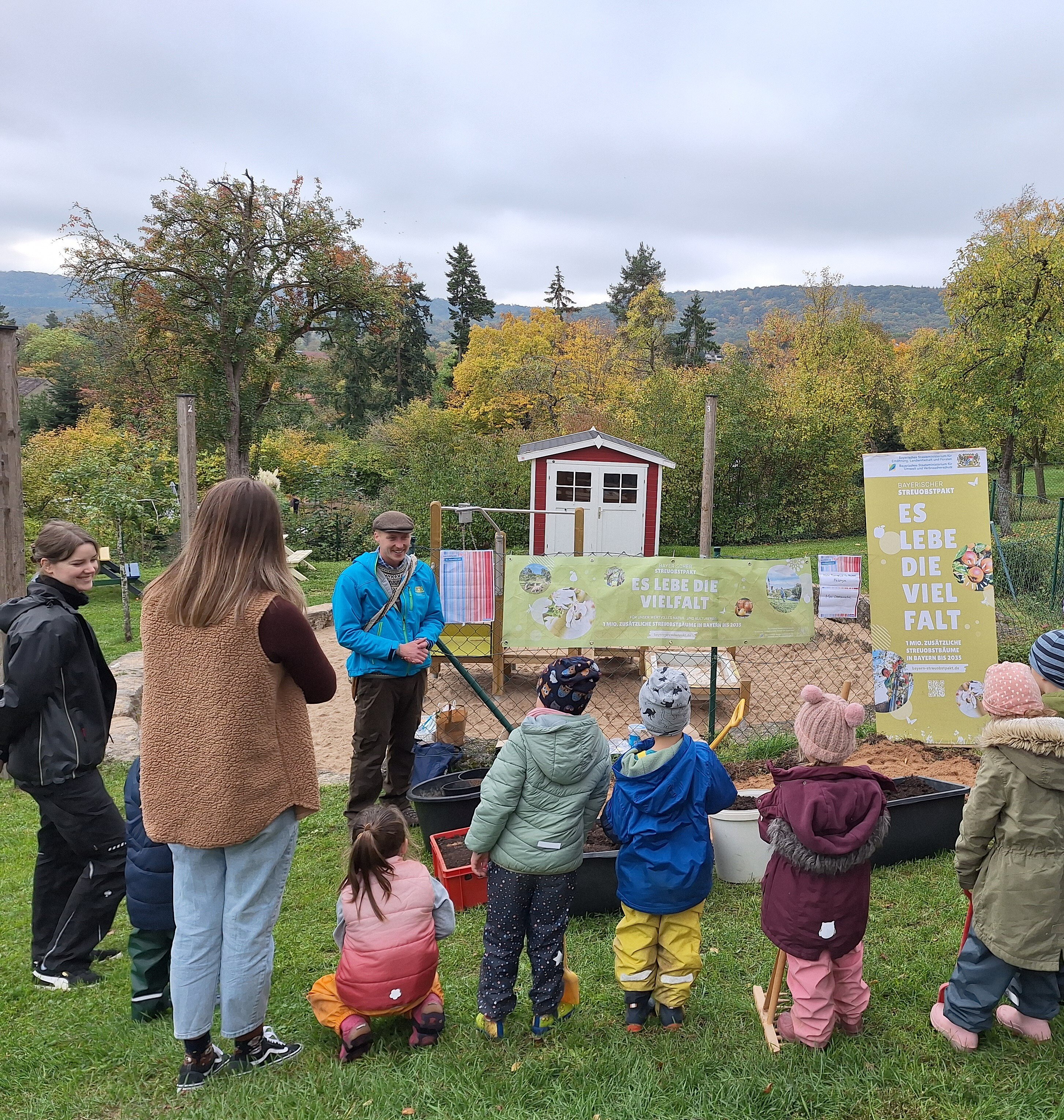 Im Rahmen der Bayerischen Klimawoche fand kürzlich in den beiden Burgbernheimer Kindergärten „Arche Noah“ und „Haus der Kinder“ eine besondere Mitmachaktion statt: Die Kinder legten gemeinsam mit Klimaschutzmanagerin Laura Hager, Streuobstmanagerin Antonia Zink und ihrem Kollegen Florian Kleinschroth „Mini-Wildobstbaumschulen“ an – ein Beitrag zum Projekt „Mehr Baamaland für Frankens Mehrregion“, das Teil des Bayerischen Streuobstpaktes ist.