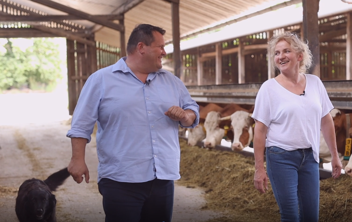 Wolfgang Link ist zu Besuch auf dem Milchhof Ströbel in Hohenroth. Auf dem Familienbetrieb mit Milchkuhhaltung und Jungviehaufzucht entstehen in der eigenen Hofmolkerei leckere Milchprodukte für Schulen, Kindergärten, Geschäfte und Privatleute. Die vielfältige Produktpalette reicht von Frischmilch, Joghurt und Molke-Drinks über Quark zu Frisch- und Schnittkäse. Unbedingt sollte man auch den neuen Camembert „Zenntaler“ probieren. Dazu kann man ganz bequem den Lieferdienst nutzen (Liefergebiet ca. 40 km Umkreis). Die Milchprodukte werden in umweltfreundliche Becher abgefüllt. Diese sind aus nachwachsenden Rohstoffen hergestellt und rückstandsfrei kompostierbar.
