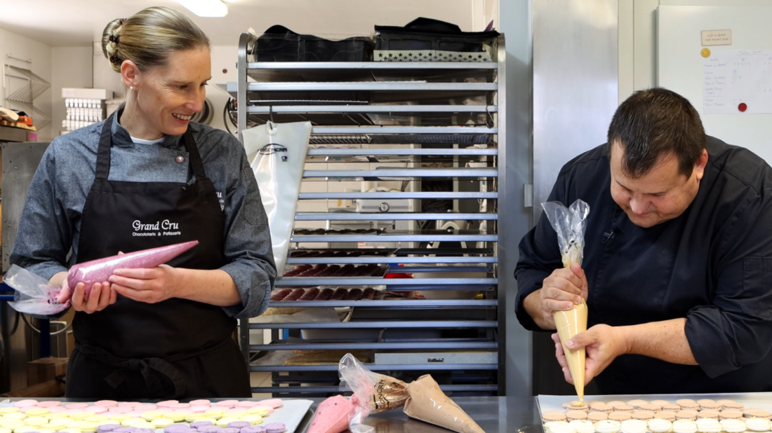 Wolfgang Link besucht Grand Cru, die Chocolaterie und Patisserie von Anna Kaerlein-Seip in Hochbach. Er hilft fleißig mit beim Füllen und Deckeln von leckeren Macarons. Nicht nur die Macarons, sondern alle Produkte wie Törtchen, Torten oder Pralinen werden dort sorgsam von Hand gefertigt, mit dem Anspruch außergewöhnlicher Qualität. Zutaten, die in Region erhältlich sind, bezieht die Konditormeisterin aus der unmittelbaren Umgebung. Leider wachsen keine Kakaobohnen an den Streuobsthängen. Wer aber süße Grüße aus Burgbernheim genießen oder verschenken möchte, dem sei das Pralinenabo empfohlen oder ein Kurs zu Pralinen, Törtchen und Desserts.